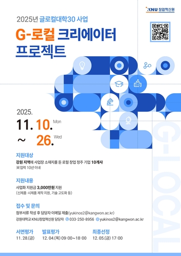 강원대학교 KNU창업혁신원이 로컬 자원을 활용한 창업 기업을 지원하기 위해 'G-로컬 크리에이터 프로젝트'에 참여할 기업을 모집합니다. 이번 프로젝트는 26일까지 신청을 받으며, 강원 지역의 창업 생태계를 활성화하고 맞춤형 지원을 통해 로컬 창업 기업의 성장을 도모하는 데 중점을 두고 있습니다.