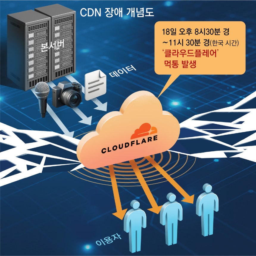 최근 CDN 분야의 주요 기업인 클라우드플레어에서 발생한 장애로 인해 챗GPT, 유튜브, 스포티파이 등 글로벌 서비스가 동시에 먹통이 되는 사태가 발생했다. 이 장애는 약 3시간 동안 지속되었으며, 전 세계 수천만 명이 영향을 받았던 것으로 추정된다. 이는 소수의 인프라 기업에 대한 과도한 의존이 초래한 구조적 취약성을 여실히 드러낸 사건이다.